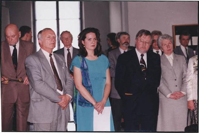 Opening ceremony of exhibit at M. Mazvydo National Library of Lithuania (1997) with organizers,