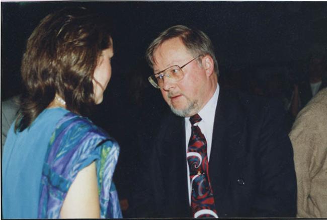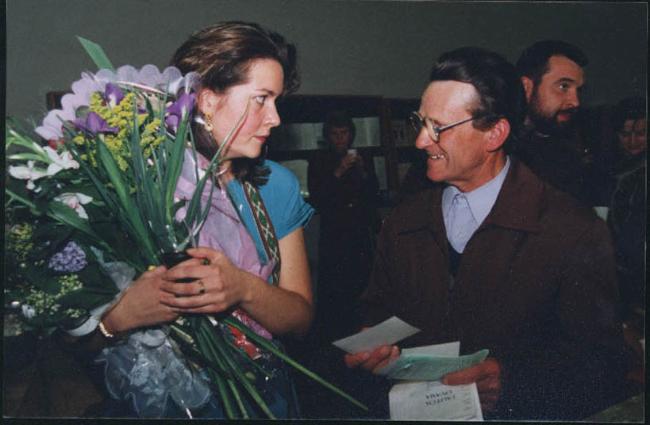 Julie Minkunas receiving advice from Prof. V. Landsbergis