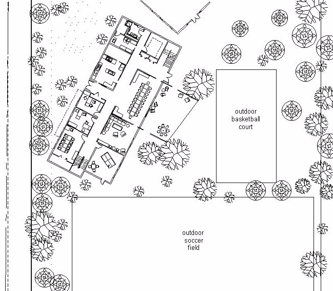 Floor Plan - orphanage & parish offices; Partial plan of outdoor recreation areas