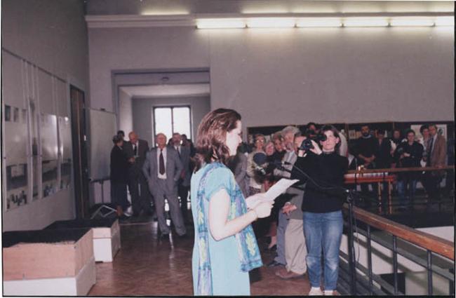 Julie Minkunas receiving advice from Prof. V. Landsbergis